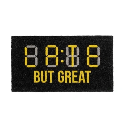 Fisura Original Doormat “Late but Great Made of Coconut Fiber with Non Slip PVC Base. Home Entrance Doormat. Black and Yellow Hand Painted. Dimensions: 70 cm x 40