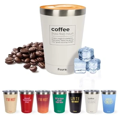 Fisura Original Thermos Flask for hot Drinks, Thermal Coffee Travel Mug Leakproof, 310 of Capacity, Insulated Made Stainless Steel, Different Designs (Coffee, White)