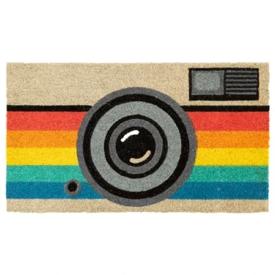 FISURA "Retro camera" coconut doormat with PVC anti slip backing. Original house entrance doormat. Hand painted. Size: 70 cm x 40 cm.