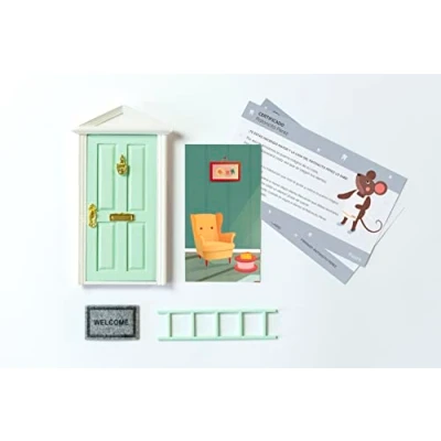 FISURA Tooth Fairy Door with 3 Accessories and Greeting Card Original Gift for Boys Girls (Green)