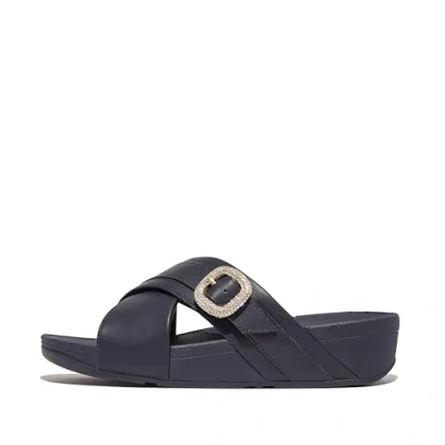 Fitflop LULU CRYSTAL BUCKLE LEATHER CROSS SLIDES