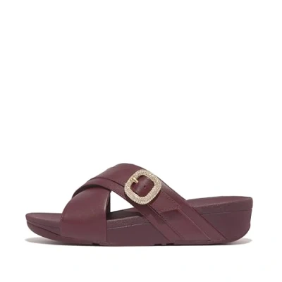 Fitflop LULU CRYSTAL BUCKLE LEATHER CROSS SLIDES