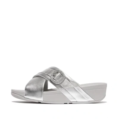 Fitflop LULU CRYSTAL BUCKLE METALLIC LEATHER CROSS SLIDES