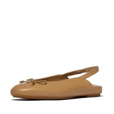 Fitflop Women's DELICATO Bow Leather Slingbacks Ballet Flat, Camel, 5 UK