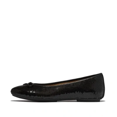 Fitflop Women's DELICATO Sequin Ballet Flats, Black, 4 UK