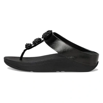 Fitflop Women's FINO BEADIE Button Toe Post Sandals, Metallic Black, 8 UK