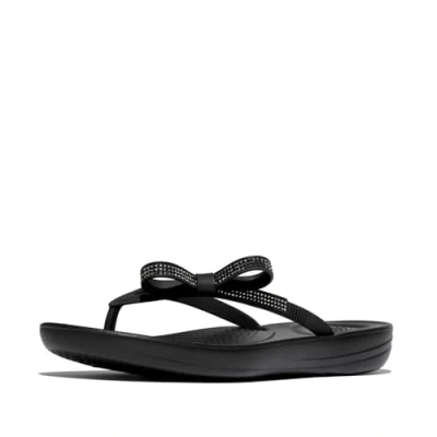 Fitflop Women's iQUSHION Glitz Bow FLIP Flops, Black, 9 UK