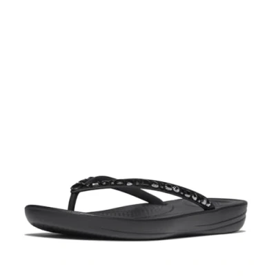 Fitflop Women's iQUSHION Multi Crystal Ergonomic FLIP Flops, Black, 3 UK