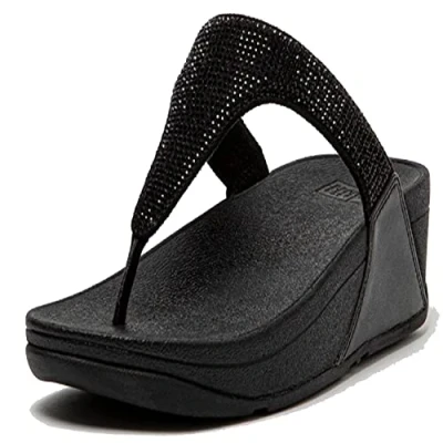Fitflop Women's Lulu Crystal Embellished Toe Post Sandals, All Black, 6 UK