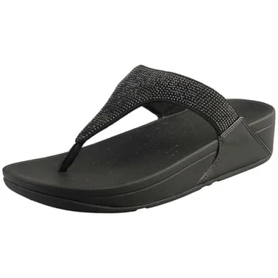 Fitflop Women's Lulu Crystal Embellished Toe Post Sandals, All Black, 4 UK
