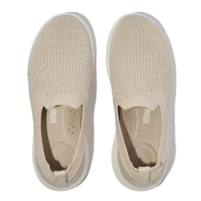 Fitflop Women's Super Q Knit Slip ONS Sneaker, Stone Beige/Platino, 6 UK