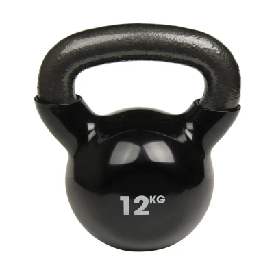 The Fitness Mad 12kg Kettlebell Black is ideal for home weight training and all sports training. Training with kettlebells has grown in popularity in recent years not only because they are extremely effective at burning fat and strengthening muscle groups throughout the body, but also because they are amazingly versatile.. Hundreds of different exercises can be done with them to improve stability, core strength and stamina, which helps to keep your workout challenging and interesting. It can be used to tone and strengthen a wide range of muscles in the arms, shoulders, back, abs, glutes and legs and also great for giving a challenging cardio workout.. This kettlebell is made from cast iron and has a very durable heavy vinyl skin which helps protect your floor. The oversized, powder-coated handle guarantees that you will keep a tight grip throughout your workout whilst also allowing for full and fluid motion.. This item is sold individually. We also have a wide variety of other weights available from 4kg to 24kg (see our website) which means there is a kettlebell to suit users of all ages and all fitness levels.