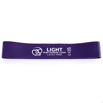 The Fitness Mad Light Mini Power Loop (latex-free) is a versatile, compact resistance band built for full-body use, from lower-body activation targeting the glutes and thighs to upper-body conditioning and stretching.. Crafted from polyisoprene, this loop avoids common latex allergies while giving you reliable resistance. Designed for beginners, high-rep workouts, and rehabilitation, the light strength helps improve mobility, warm-up effectively or add gentle resistance without overloading joints.. Measuring 26cm in length and 5cm wide, the band is lightweight (weighs just 13g), making it easy to carry in your gym bag, suitcase or training kit. Flexible and compact, it’s perfect for home workouts, studio sessions or using as part of a resistance band progression set. Just be mindful not to stretch it more than 2.5× its original length to ensure safety and longevity.