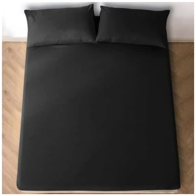 Fitted Bed Sheets King Size (150x200 cm) Breathable Sheet 25cm(10") Deep Elasticated Corners Bottom Black