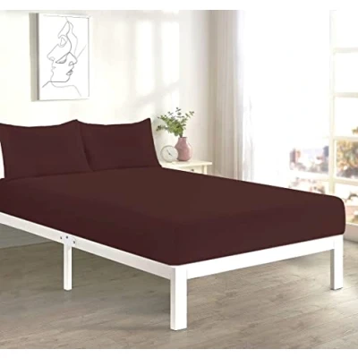 Fitted Sheet Luxury Easy Care Polycotton Bed Mattress Cover & Pillowcase Non Iron, soft fabric, 26 Colours (Brown, Small Double 4FT)