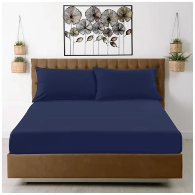 Fitted Sheet Single Bed (91 x 193cm) Navy Bedding Sheets Plain Dyed Microfiber (10 inch) 25cm Deep Pocket Bottom Easycare Wrinkle & Fade Resistant