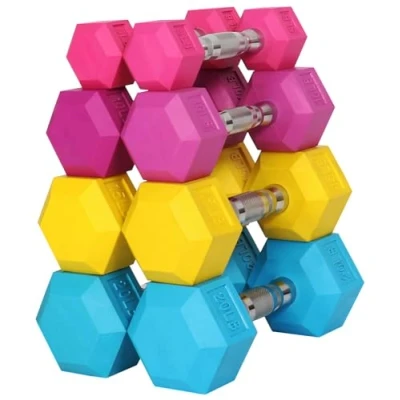 Fitvids Colored Rubber Encased Hex Dumbbell, Set Including 5, 10, 15, 20LB Pairs