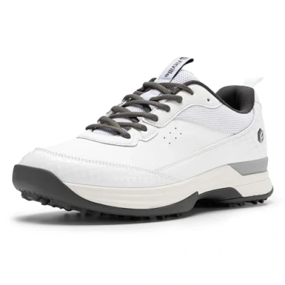 Slip Resistant and Torsion Resistant Outsole: These 4e golf shoes offer optimal balance of abrasion-resistance, traction and flexibility with enhanced slip-resistant spikes, low-profile outsole brings you even closer to the ground Wide Toe Golf Shoes for Court: Roomy toe box offers ample space for toes to spread freely & naturally; Especially for wide feet, high instep and people suffering from foot problems like plantar fasciitis, flat feet, bunions, neuropathy, arthritis, backache and hammertoes Standing Comfortably for Hours: High rebound EVA shock-reduction midsole delivers soft cushioning and lightweight support; Anti-torsion TPU rubber enhances agility, stability and traction Arch Support Golf Shoes: Arch fit insole and sponge foam material enhances anti-odor function and facilitate natural foot motion for shock absorbing and pain relief Lighter, bouncier, and longer-lasting: Our 58-degree secondary foamed EVA midsole offers all-day comfort and top-notch performance.