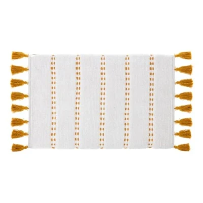 Five Cotton Bathroom Rug with Tassels 50 x 75 cm Ochre Product dimensions: 50 x 75 cm; material: cotton Model: White/Mustard