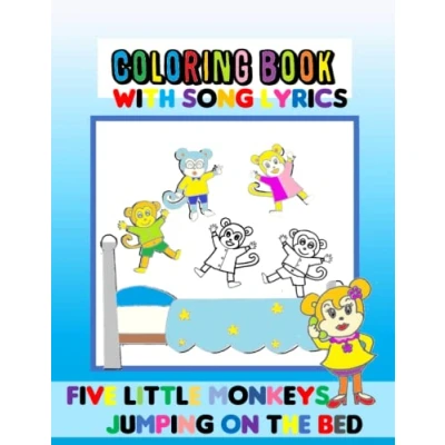 Five Little Monkeys Jumping on the Bed: Coloring Book for Kids with Song Lyrics