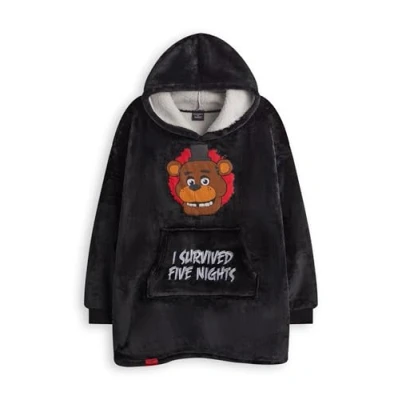 STEP INTO FREDDY FAZBEAR'S WORLD: Designed with Five Nights At Freddy's fans in mind, this wearable blanket hoodie features Freddy Fazbear on a bold black pullover, crafted in collaboration with Five Nights At Freddy's designers. ALL-DAY COMFORT: Made from soft ‘sherpa fleece fabric,’ this hoodie has a cosy sherpa lining, a roomy fit, and a hood to keep your gamer warm and snug during play or relaxation. FOR GAMING FANS: Designed for boys who love the thrilling Five Nights At Freddy's series, this hoodie is a must-have for any fan who enjoys staying warm in style! PERFECT FIT FOR EVERY FAN: Designed with an oversized fit for ages 8-13 and a slightly more regular fit for 14-15 year-olds, this hoodie provides ample room to move while keeping your child cosy. Be sure to check our size guide to understand the length! GIVE THE GIFT OF COMFORT: Surprise your little gamer with a hoodie that combines Freddy-inspired design with everyday practicality!