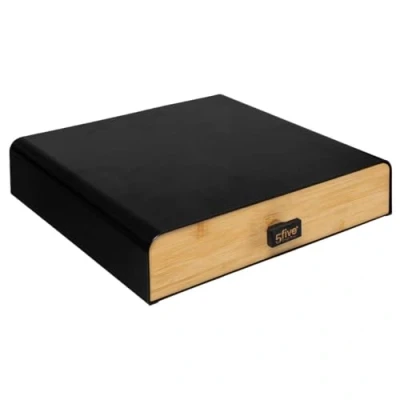 Five Universal Capsule Holder Metal and Bamboo Size: L 33 x D 31 x H 7.5 cm - Material: metal and bamboo - Can be used horizontally and vertically - Compatible with all capsules thanks to its removable dividers: Horizontal: - Espresso x 64 - Vertuo x 25 - Dolce Gusto x 30 - Tassimo x 48 - Special T x 35 - Vertical: - Espresso x 40 - Vertuo x 25 - Dolce Gusto x 25 - Tassimo x 48 - Special T x 35 - Model: black