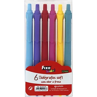 6 pens with oil base ink 6 colors: purple, green, pink, blue, yellow and red With grip grip and soft body With strawberry smell 0.7 mm tip, Manufacturer: Grafoplás