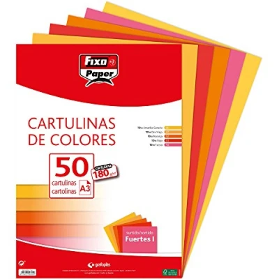 180gsm card stock Assorted strong colours I: old gold, canary yellow, orange, fuchsia and red. Pack of 50 A4 (297 x 210mm) Card Stock FSC certified. Ensures that products are sourced from responsible sources. Fixo Paper is a brand belonging to Grafoplás