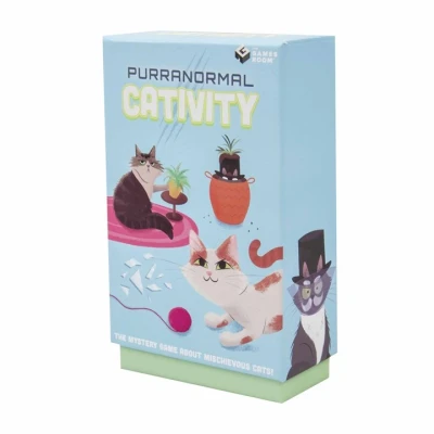 Unleash your inner detective and solve the claw-some crimes in Purranormal Cativity! Identify the crime that your suspect has committed! Discover their motive & hiding place. Purranormal Cativity is a mystery game for people with mischievous cats or those with a love for cheeky animals! Identify the crime that your suspect has committed! It is now your task to uncover what happened in the scenes leading up to your arrival. Identify the criminal cat, their mischievous crime, motive and hiding place! When you believe you have the answer, give your best Meow before revealing your guess to your opponents! With 9 criminal cat suspects! Each with a cheeky personality. Use the included paper sheets to eliminate the suspects and narrow down your criminal. Pack includes 36 x Cards 4 x Pencils & 100 x Clue Sheets. Players:3-6 Age:8+, Manufacturer: Fizz Creations