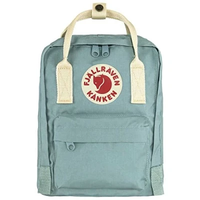 simple shoulder straps and handles at the top Number of Pockets: 4 (3 exterior, 1 interior) Weight: 9.2 oz (260 g) small front pocket made of Quality Material Mini Kånken backpack in sky blue-light oak color Unisex design Compact and lightweight for everyday use Made from durable and water-resistant material