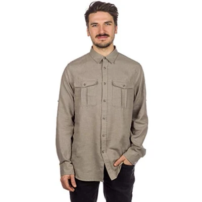 Long-sleeved shirt in fresh tissue and easy to maintain In hemp and recycled polyester irregular fabric structure, which offers a greater air circulation