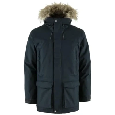 Comfortable and lightly padded parka that effectively protects from wind, rain and cold. Made of durable 100% recycled polyamide with waterproof and breathable membrane. Adjustable protective hood with detachable faux fur trim and two-way front zip with protective flap and press studs.