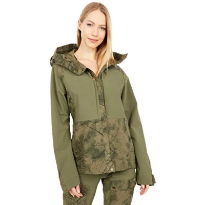 Adjustable storm hood and chest pockets with zips. Well ventilated stretch fabric on the back, sleeves and pockets. Armpit ventilation openings with two-way zippers Designed for freedom of movement and durability on challenging walks. G-1000 Eco on hood, shoulders, front and lower back.