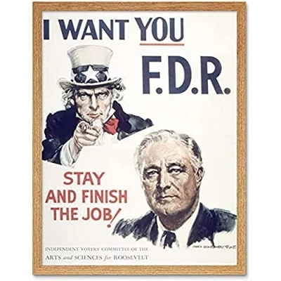 Flagg FDR Roosevelt Uncle Sam Präsident USA Vintage Werbung ungerahmt Wandbild Druck Poster Home Decor Premium
