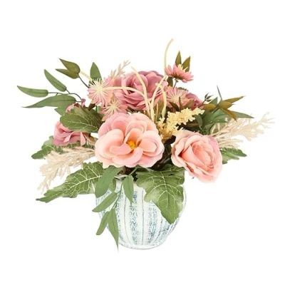 Flair Flower Artificial Arrangement of Roses in Pot Decoration Floristry Fake Flowers Silk Wedding Centrepiece Table