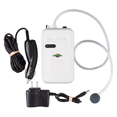 Made of plastic 12V Adapter, 110V Adapter, stone and one hose included Run time of 40 hours