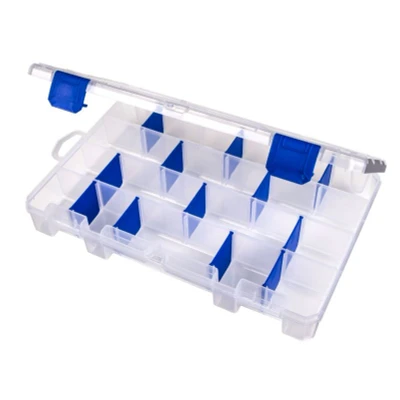 Amazon11'' X 7. 25'' X 1. 75'' Color: translucent Material: Polypropylene No spill positive locking latch 6 fixed compartments with 10 dividers