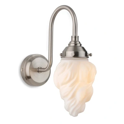 The Flame Wall Light pays homage to the distinguished Art Deco style, providing a glimpse into a glamorous past while ensuring contemporary convenience. Its graceful swan neck design is visually stunning and serves practical purposes by allowing you to direct the light exactly where it is needed. Finished in brushed steel, the wall light radiates warmth and sophistication, while the legendary white flame glass shade adds a touch of mystique.