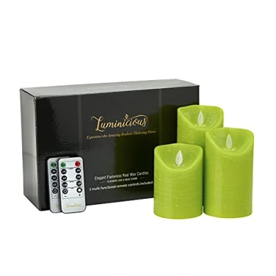 Flameless Candles Flickering LED Battery Operated Electric Pillar Candle Realistic Moving Flame Flicker with Remote Control & Timer Real Wax Lime Green Great Home Decor Decorative Gift