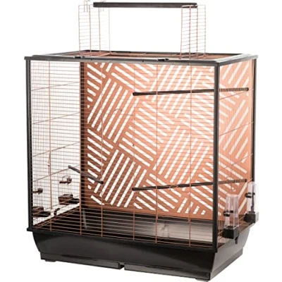 Flamingo Bird Cage Aviary Birds Parakeet Siri Copper 78 x 48 100 cm 4 Perches & Bowls, 5 Flaps + Roof Opening, Double Drawers, Decorative Back Panel