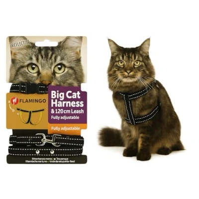 Flamingo Cat Harness with leash Elza Black 22 32cm 27 46cm 110cm 10mm