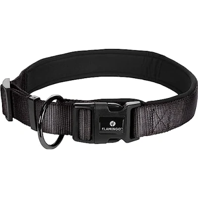 Flamingo Dog Collar Abbi Black XL 55 60cm 32mm
