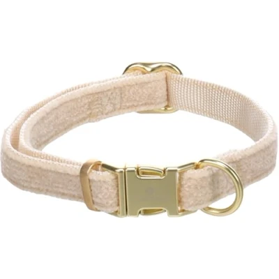 Material: nylon with soft velvet Continuously adjustable Metal click buckle and ring for leash with a mat gold-coloured finish