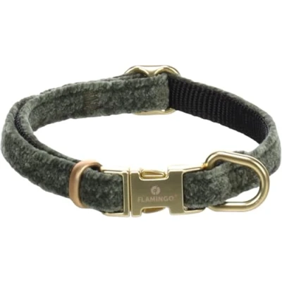 Material: nylon with soft velvet Continuously adjustable Metal click buckle and ring for leash with a mat gold-coloured finish