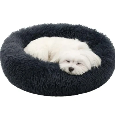 Flamingo Donut Dog Bed, Calming Round Cat Bed Soft and Fluffy Cuddler Pet Cushion Self Warming Puppy Beds Machine Washable, 55cm Grey