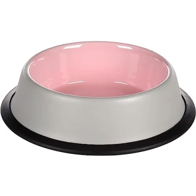 Flamingo FEEDING AND DRINKING BOWL CAT NELL STAINLESS STEEL PINK ANTISLIP DUE...