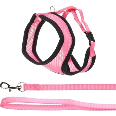 🐾 Perfect Fit for Medium-Sized Cats – Specially designed for medium-sized cats, this harness offers a comfortable and secure fit with a neck circumference of 32 cm and an adjustable chest size between 36–48 cm. It provides excellent support without restricting natural movement, making it ideal for walks, travel, or outdoor adventures 🎀 Fully Adjustable for Tailored Comfort – Both the neck and chest straps are fully adjustable, allowing you to customize the fit to your cat's body. Whether your cat is slim or slightly more robust, the flexible adjustment ensures maximum comfort and prevents the harness from slipping or causing irritation. 🌬️ Breathable Mesh for All-Day Comfort – Constructed from lightweight nylon and breathable mesh fabric, the harness promotes airflow to keep your cat cool and comfortable during active outings. The mesh design reduces sweating and discomfort, especially on warm days. 🔒 Quick-Release Safety Buckle for Convenience – Features a sturdy quick-release buckle that makes it easy to put the harness on and take it off quickly and safely. The buckle is strong enough to secure your cat while still being easy to operate for the owner. 🐕 Durable Leash Included for Greater Freedom – The set includes a robust leash measuring 110 cm in length, 10 mm in width, and 2 mm in thickness, providing the ideal balance between controlled guidance and freedom for your cat to explore confidently.