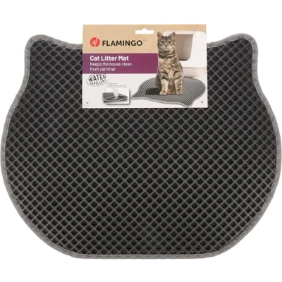 Flamingo Matz Grey Cat Litter Tray Mat 50x40cm Dual Layer, Waterproof, Easy to Clean, Space Saving for Small Homes