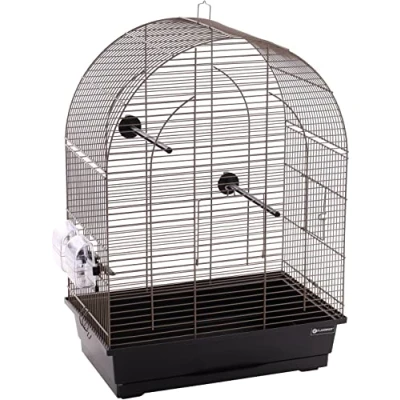 Material: metal and plastic 2 plastic perches & 2 small bowls/bowls With sliding tray for easy cleaning