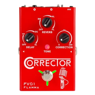 The FV01 vocal effects Corrector is primarily a pitch-correction pedal that offers everything from pitch correction to full-blown effects overload when your input is a microphone. The FV01 features three separate vocal effects as indicated by the TONE LED displayed prominently in the center of the pedal. Singers can switch between WARM, BRIGHT, and NORMAL modes, with each mode indicating the type of EQ manipulation provided by the pedal. It can be used as a microphone amplifier or a traditional stompbox. Optional 48V phantom power for condenser microphones. Two different output modes for a mixed-signal or individual signals from guitar and microphone.